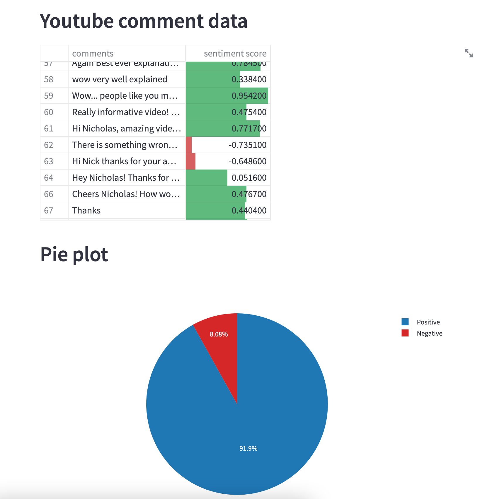 이 프로젝트를 하면서 새로운 영역을 시도해 봤다. nltk, plotly, streamlit, youtube api 모두가 처음 사용해보는 도구들 이였다. 예전의 나였다면 아예 처음부터 공부를 하려고 해서 아예 프로젝트를 시작도 하지 못했을 것이다. 하지만 요번에는 내가 목표를 잡고 그 목표만을 위해 필요한 부분만을 공부했다. 그리고 정제된 블로그의 글이나 책이 아닌 해당 library의 docs를 보면서 공부를 하며 내가 한 걸음 더 성장한 프로그래머가 됐다고 느꼈다.
